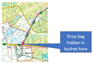 I repacked my race vest and bumbag so the race vest had the heavier items and the bum bag lighter items. Then stashed the drop bag back in the undergrowth for collection the following day and set off again before my body temperature dropped.