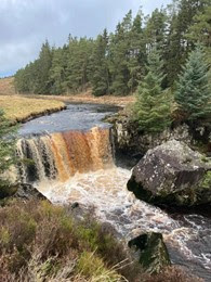Leaving the forestry track after a couple of turns passing through the No military vehicles gate down to Allerybanks. I love this section of soft grass carpet through a clearing in the trees. I was making good time ticking over 6 miles in an hour, ahead of schedule. Leaving the forestry running along the side of Chirdon Burn towards the first obligatory photo stop at Jerry’s Linn. You can hear the waterfall before you see it, running high along a ridge of trees before descending towards the Linn.